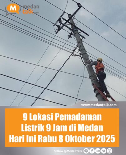 Berita Medan Talk : 9 Lokasi Pemadaman Listrik 9 Jam di Medan Hari Ini Rabu 8 Oktober 2025