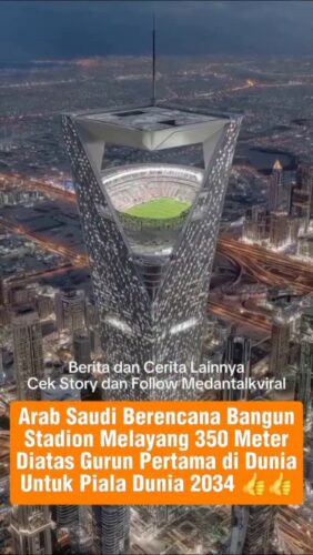 Video Viral : Arab Saudi berencana membangun “stadion langit” pertama di dunia yang akan menggantung di ketinggian 350 meter di atas gurun. Proyek ambisius ini secara resmi dinamai Stadion NEOM, dan akan menjadi bagian dari kota futuristik The Line di wilayah NEOM.