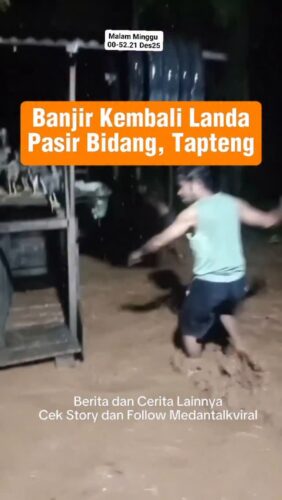 Pasir Bidang, Kabupaten Tapanuli Tengah, kembali dilanda banjir pada Minggu dinihari, 21 Desember 2025. Banjir terjadi sekitar tengah malam setelah hujan dengan intensitas tinggi mengguyur wilayah tersebut selama beberapa jam.