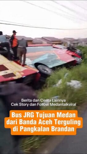 Berita Viral : Bus JRG Tujuan Medan dari Banda Aceh terbalik di Pangkalan Brandan, Sumatra Utara