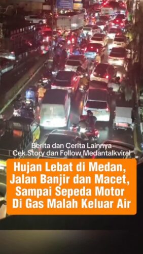 Berita Viral : Hujan deras yang mengguyur Kota Medan menyebabkan sejumlah ruas jalan tergenang air dan arus lalu lintas menjadi padat.