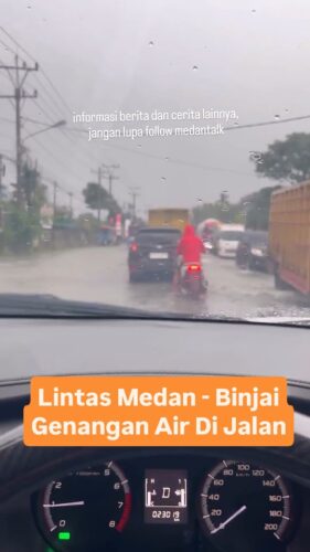 Berita Medan Talk : Hujan deras yang menguyur medan dan sekitar nya sore hari ini sabtu 13/09/2025 mengakibatkan genangan air dijalan lintas Medan – Binjai didaerah diski Deli Serdang.