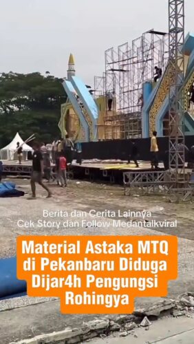 Video Viral : Material astaka utama Musabaqah Tilawatil Qur’an (MTQ) Kota Pekanbaru, di Komplek Purna MTQ, Jalan Jendral Sudirman, diduga dij*rah sekelompok pengungsi Rohingya, Senin (10/11) siang.