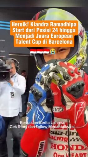 Berita Viral : Pembalap Indonesia, Muhammad Kiandra Ramadhipa, mengg1la untuk menang dalam balapan European Talent Cup/ETC Catalunya 2025.