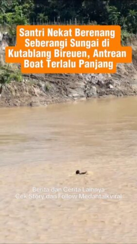 Video Viral : Santri Nekat Berenang Seberangi Sungai di Kutablang Bireuen, Antrean Boat Terlalu Panjang