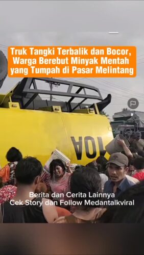 Berita Viral : Sebuah truk tangki dilaporkan terbalik dan mengalami kebocoran di kawasan Pasar Melintang, Lubuk Pakam, Sumatra Utara, Kamis (8/1/2026).