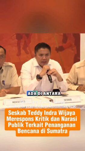 Video Viral : Sekretaris Kabinet Letkol Teddy Indra Wijaya merespons kritik dan narasi publik terkait penanganan bencana di Sumatera. Ia menegaskan sejak awal seluruh unsur negara dan masyarakat telah bekerja maksimal di lapangan untuk mempercepat pemulihan wilayah terdampak.