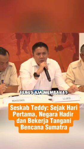Video Viral : Sekretaris Kabinet (Seskab) Teddy Indra Wijaya menegaskan bahwa pemerintah telah bergerak cepat sejak detik pertama dalam menangani bencana yang melanda Provinsi Aceh, Provinsi Sumatra Utara, dan Provinsi Sumatra Barat. Hal tersebut disampaikan Seskab Teddy dalam keterangan pers di Posko Terpadu Penanggulangan Bencana Alam, Pangkalan TNI AU Halim Perdanakusuma, Jakarta, pada Jumat, 19 Desember 2025.