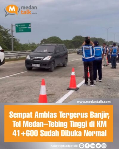 Berita Medan Talk : Sempat Amblas Tergerus Banjir, Tol Medan–Tebing Tinggi di KM 41+600 Dibuka Normal Mulai Hari Ini