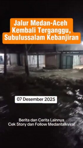 Sejumlah titik utama terendam, menyebabkan aktivitas warga terganggu dan akses lintas Medan–Aceh ikut terdampak, Minggu (7/12/2025).