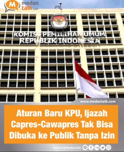 Berita Medan Talk : Aturan Baru KPU, Ijazah Capres-Cawapres Tak Bisa Dibuka ke Publik Tanpa Izin Komisi Pemilihan Umum (KPU) menerbitkan putusan baru terkait penetapan dokumen persyaratan calon presiden (capres) dan calon wakil presiden (cawapres) sebagai informasi publik yang dikecualikan. Total ada 16 dokumen, salah satunya adalah ijazah kandidat. Aturan baru ini tertuang dalam Keputusan […]