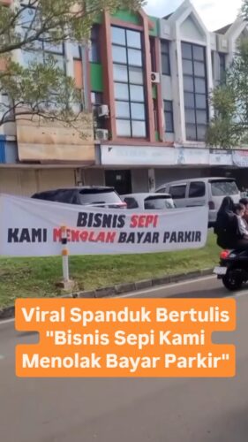Viral spanduk bertuliskan “Bisnis sepi kami menolak bayar parkir” ini bukan di