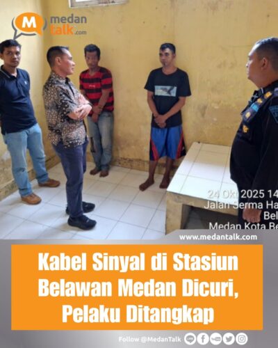 Berita Medan Talk : Kabel Sinyal di Stasiun Belawan Medan Dicuri, Pelaku Ditangkap Pelaku pencurian kabel sinyal langsir L10 dan kabel axle counter DP 10A di emplasemen Stasiun Belawan milik PT Kereta Api Indonesia (KAI) ditangkap oleh petugas PT KAI Divisi Regional I Sumatera Utara bersama Reskrim Polsek Belawan. Pelaku bernama Muhammad Iqbal alias Ucok […]