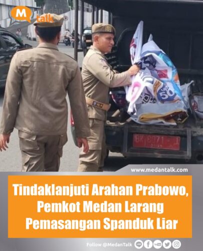 Berita Medan Talk : Tindaklanjuti Arahan Prabowo, Pemkot Medan Larang Pemasangan Spanduk Liar Pemerintah Kota (Pemkot) Medan melalui Satpol PP melarang pemasangan spanduk liar di ruang publik. Hal ini menindaklanjuti arahan Presiden Prabowo terkait gerakan ASRI (Aman-Sehat-Resik-Indah). “Warga dilarang untuk memasang reklame liar dalam bentuk spanduk atau umbul-umbul di fasilitas publik maupun di pohon. Ini […]